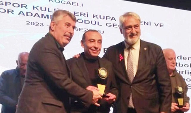 Kocaeli Amatör Spor Kulüpleri Kupa Töreni ve Spor Adamları Ödül Gecesi’ne katılan AK Parti Darıca İlçe Başkan Yardımcısı ve eski Darıca Gençlerbirliği Spor direktörü Halim Ceyran, ödülünü belediye başkanı Tahir Büyükakın’ın elinden aldı.
