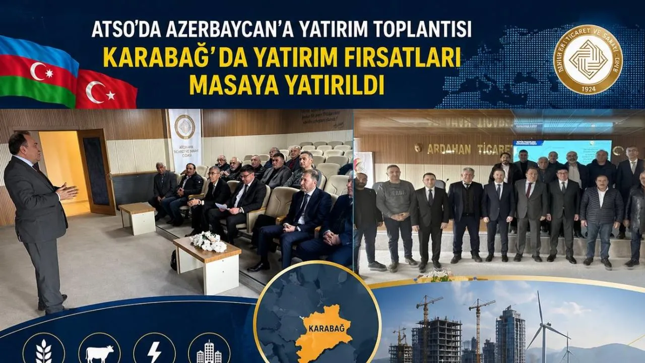 Ardahan Ticaret ve Sanayi Odası (ATSO) tarafından, Azerbaycan’ın Karabağ bölgesindeki ekonomik potansiyel ve yatırım fırsatlarının ele alındığı “Azerbaycan’a Yatırım: Teşvikler ve Destek Mekanizmaları” konulu toplantı gerçekleştirildi. Toplantıda, bölgedeki iş insanlarına yatırım ve iş birliği çağrısında bulunuldu.