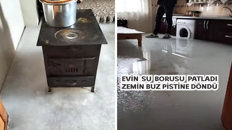 Zemini tamamen buzla kaplanan evine giren Atilla Bozkurt, odalarda donan buzu eritmek için çareyi soba yakarak evini ısıtmakta buldu. Saatlerce süren çalışmanın ardından, evin zeminindeki buzlar eridi. Eriyen buzlar evdeki halı ve mobilyaları sular içinde bıraktı. Bozkurt, buz tutan evinin içini telefon kamerasına çekerek sosyal medya hesabından paylaştı.