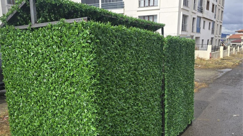 Kent merkezindeki çöp konteynırlarının dış yüzeyi suni çimden oluşan kafes uygulamasıyla modern bir görünüme kavuşturuldu.