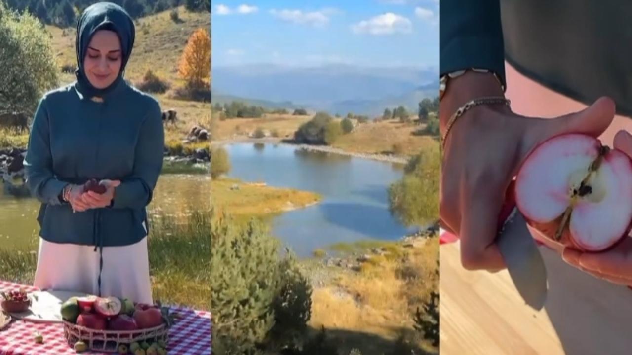 Vali Hayrettin Çiçek’in eşi Berna Çiçek, Posof’un sonbahar renkleriyle süslenen göllerini gezerek, bölgeye özgü kırmızı elmayı tanıttı. Ziyaret kapsamında Kızılgöl, Kanlı Göl ve Armutveren Gölü gibi Posof’un doğal güzelliklerini yerinde gören Berna Çiçek, bölgeye özgü “içi dışı kırmızı elmayı” keserek tanıttı.
