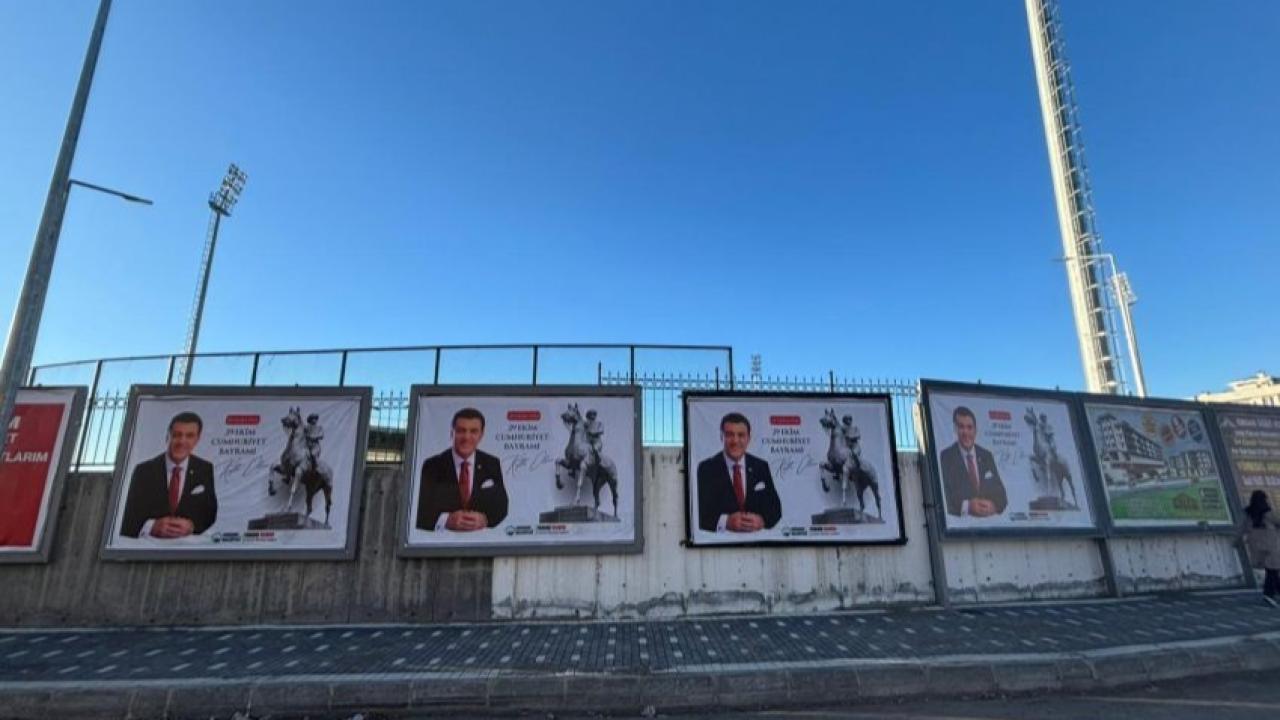 Karagöl Mahallesindeki 80. Yıl Şehir Stadyumu önündeki reklam panolarında yan yana asılmış 4 adet afişin görüntüsünü cep telefonuyla kaydedip haber merkezimize ulaştıran bir vatandaş, yazdığı notta ise şu bilgilere yer verdi: