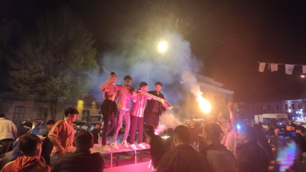 Galatasaraylı taraftarlar, Trendyol Süper Lig'de mutlu sona ulaşan takımlarının şampiyonluğunu Ardahan'da kutlamaya başladı.