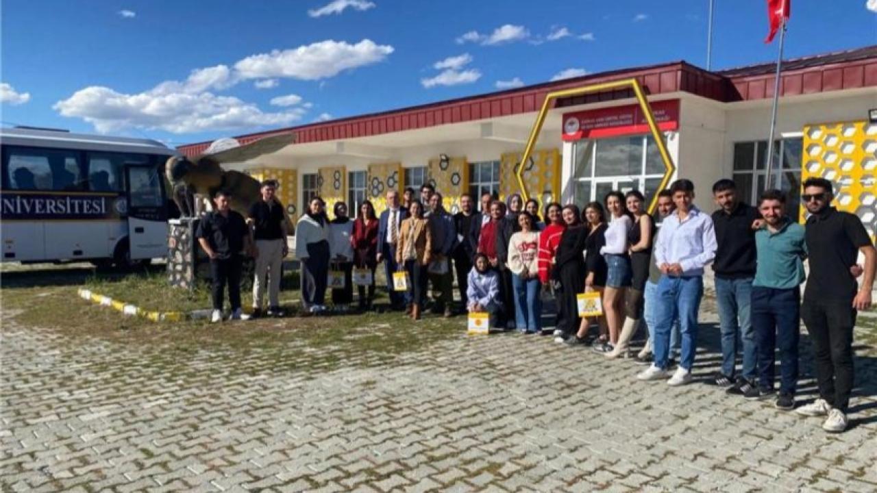 Etkinliğin ikinci bölümünde, Girişimcilik dersi kapsamında Arıcılık Müzesi ziyaret edilerek Kafkas Arısı’nın özellikleri, bölgede arılar için önemli bal bitkileri, ekolojik çeşitlilik ve yerel flora hakkında bilgilendirme yapıldı. Bu çerçevede, arı ürünlerinin yalnızca bir üretim faaliyeti değil, aynı zamanda katma değeri yüksek bir girişimcilik alanı olduğu vurgulandı. Öğrenciler daha sonra üretim merkezinde, ileri dönüşüm petek üretimi, propolis ve polen toplama cihazları gibi yenilikçi uygulamaları yerinde gözlemledi.