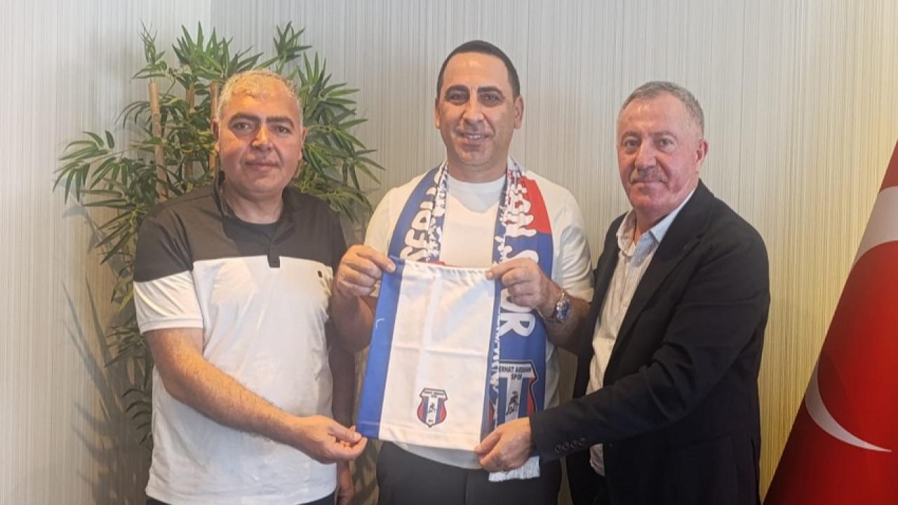 Serhat Ardahanspor Başkanı İskender Alihanoğlu ve Kulüp Müdürü Özkan Karakaya’nın iş yerinde ziyaret ettiği Hakan Yılmaz’dan bordo mavili kulübe maddi destek geldi.