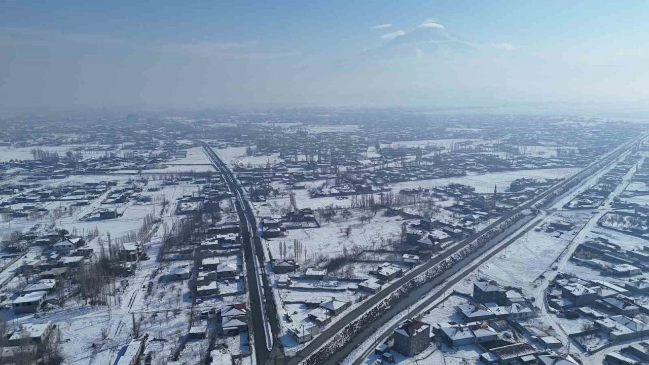 Doğu Anadolu’nun ’Çukurovası’ olarak bilinen Iğdır son yılların en yoğun kar yağışını aldı. Günlerdir etkili olan yağışın ardından şehir merkezinde kartpostallık görüntüler oluştu. Beyaz örtünün hakim olduğu Iğdır, dron ile havadan görüntülendi. Kentin karla kaplı etkileyici manzaraları görsel şölen sundu.