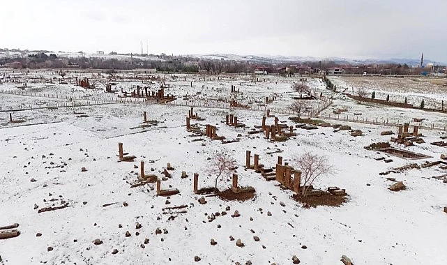 Havadan çekilen drone görüntüsünde 210 dönümde kurulu Ahlat Selçuklu Meydan Mezarlığındaki mezar taşları beyaz kar örtüsüyle hayranlık uyandırdı. Kuş bakışı çekilen görüntüde tarihi mezarlığın ihtişamı göz önüne serilirken kahverengi mezar taşları ve beyaz kar örtüsü seyri güzel görüntüler oluşturdu.