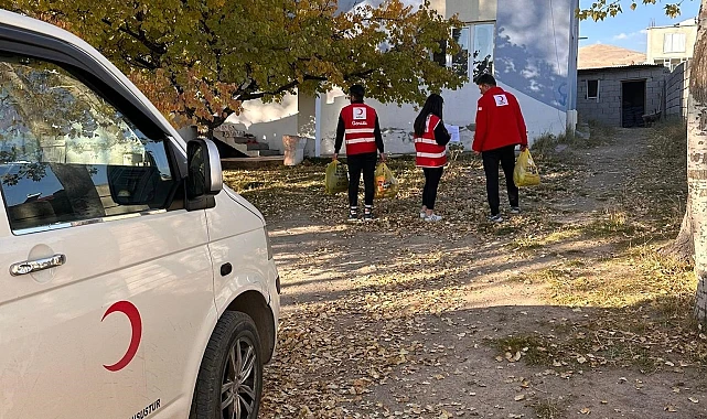 Bitlis'in Adilcevaz ilçesinde Kızılay Şube Başkanlığı tarafından kış mevsimi öncesi ihtiyaç sahibi ailelere kıyafet ve gıda yardımı yapıldı.