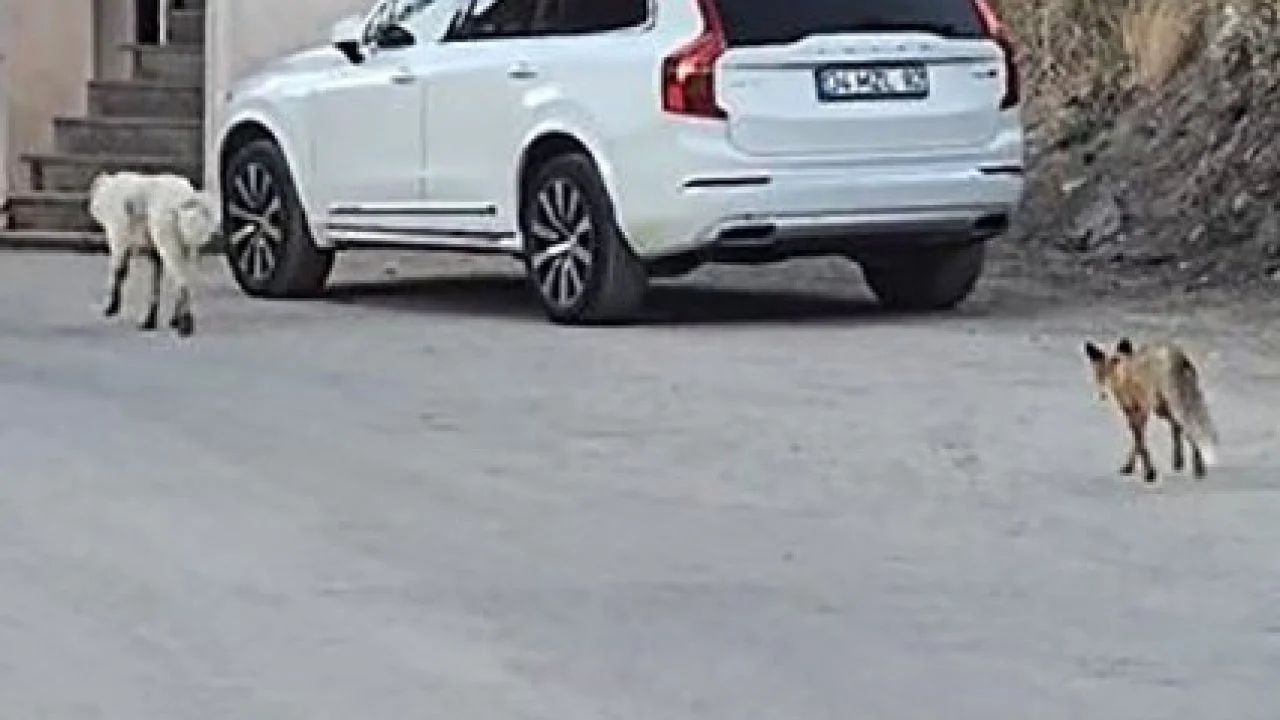 Hakkari’nin Dağgöl Mahallesi’nde sabahın ilk ışıklarında sokak köpeğinin peşine takılan ve onu adım adım takip eden tilki kameralara yansıdı.