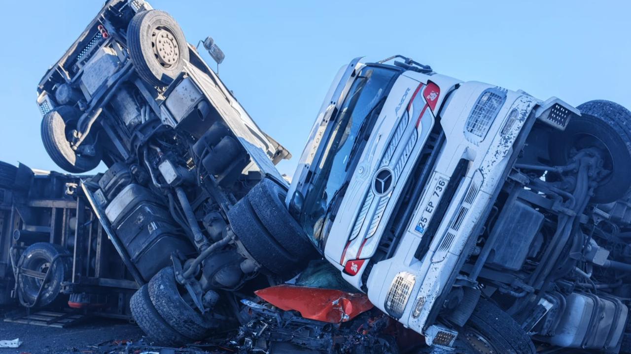 Kazanın ardından bölgeye itfaiye, AFAD, jandarma ve sağlık ekipleri sevk edildi. Ekipler, iki tır arasında sıkışarak hurdaya dönen otomobilden sürücüyü çıkarıp sağlık ekiplerine teslim etti. İlk müdahalesi olay yerinde yapılan yaralı sürücü daha sonra hastaneye kaldırıldı.