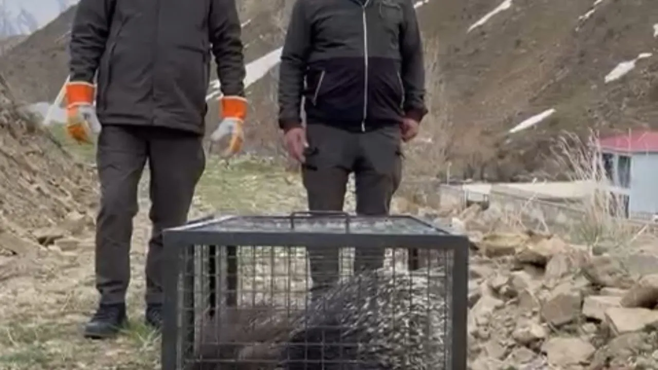 Hakkari’nin Yüksekova ilçesinde yaralı halde bulunan Hint oklu kirpi, Van’daki tedavisinin tamamlanmasının ardından doğal yaşam alanına bırakıldı.