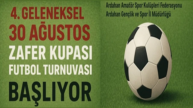 Ardahan Amatör Spor Kulüpleri Federasyonu (ASKF) ile Ardahan Gençlik ve Spor İl Müdürlüğü’nün iş birliğiyle bu yıl 4.’sü düzenlenecek olan Geleneksel 30 Ağustos Zafer Kupası Futbol Turnuvası için geri sayım başladı.